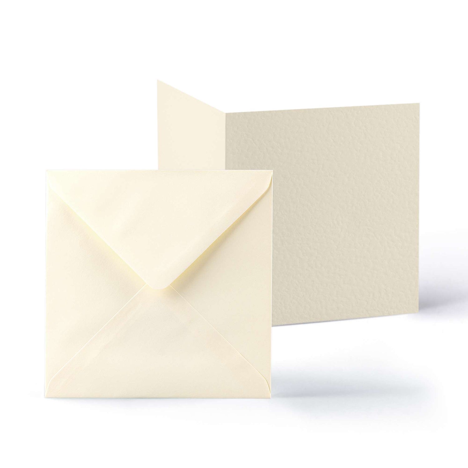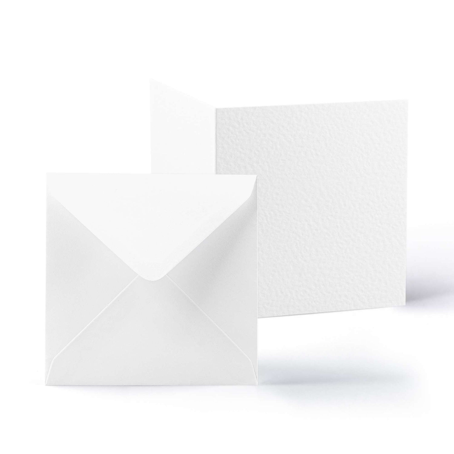 Set elegante composto da biglietti con finitura martellata (300 g/m²) e buste abbinate (100 g/m²).